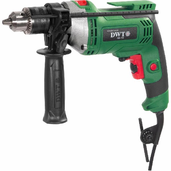Furadeira com impacto FID 710 220V é indicada para perfuração em metal e madeira na função sem impacto e na função com impacto para concreto e alvenaria. Possui interruptor eletrônico com pré-seleção de velocidade, o qual permite controlar a rotação da máquina, possibilitando iniciar o furo com uma rotação baixa e aumentar gradativamente de acordo com a necessidade de perfuração, botão trava do interruptor para trabalhos contínuos, punho auxiliar e limitador de profundidade, conferindo maior praticidade ao operador. Conta com sistema reversível, que facilita a retirada da broca caso ela trave durante a perfuração e motor com dupla isolação, que garante maior segurança.