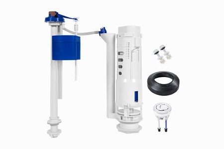 Mecanismo de descarga para caixas acopladas com acionamento superior. Sistema com duplo acionamento, que permite economizar água ao escolher a descarga de 3 L ou 6 L, conforme a necessidade de limpeza da louça.