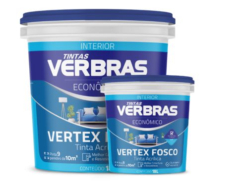 VERTEX FOSCO VERBRAS deixa sua casa mais bonita e protegida com economia. Sua fórmula diferenciada garante mais qualidade e resistência. Possui bom acabamento que ajuda a disfarçar leves imperfeições na parede. Produto indicado para pinturas internas em superfícies de reboco, massa acrílica (exterior/interior) ou massa corrida (interior), texturas, concretos, gesso, fibrocimento e repintura. Produto com baixo odor. Diluir 40% com água potável para todas as superfícies. PISTOLA: Diluir 50% com água potável, pressão entre 2,2 e 2,8kgf/cm² ou 30 a 35 lbs/pol². Aplicação: Rolo de lã(pelo baixo), pincel ou trincha. DEMÃO: Duas a três, com intervalo de quatro horas. 1 Demão: recomendamos somente para repintura e quando se mantem a cor original. 2 Demãos: normalmente quase todas as superfícies são necessárias pelo menos duas demãos para obter um bom resultado. 3 Demãos: recomendamos quando a cor escolhida for escura ou quando se pretende pintar com uma cor clara sobre um fundo escuro. Secagem: Ao toque: 1 hora. Entre demãos: 3 horas. Final: 8 horas. Composição: Água, emulsão estireno-acrílico, pigmentos orgânicos e/ou inorgânicos, cargas minerais inertes, e aditivos. Desenvolvido conforme Normas: NBR 15079 e NBR 11702 Tipo 4.5.1 Látex Fosco Econômico. Cores: conforme catálogo Verbras. Evite pintar em dias chuvosos, com ventos fortes, temperaturas abaixo de 10ºC e/ou umidade superior a 90%. Até mais ou menos duas semanas de pintado, pingos de chuva podem provocar manchas. Se ocorrer lavar toda a superfície com água potável. OBSERVAÇÃO: A luminosidade do ambiente, onde será aplicado a tinta, também pode interferir na tonalidade da cor escolhida.